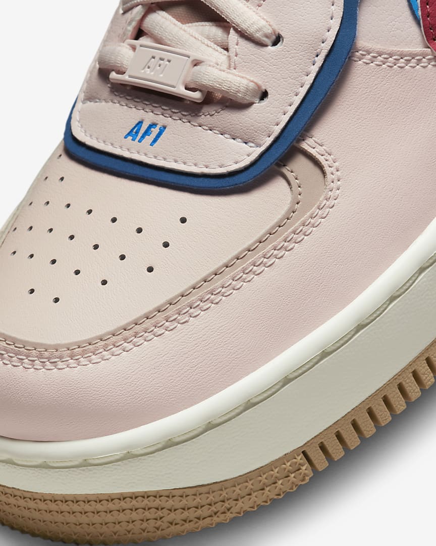 The Nike Air Force 1 Shadow puts a playful twist on a classic b-ball design.Using a layered approach, doubling the branding and exaggerating the midsole, it highlights AF-1 DNA with a bold, new look.